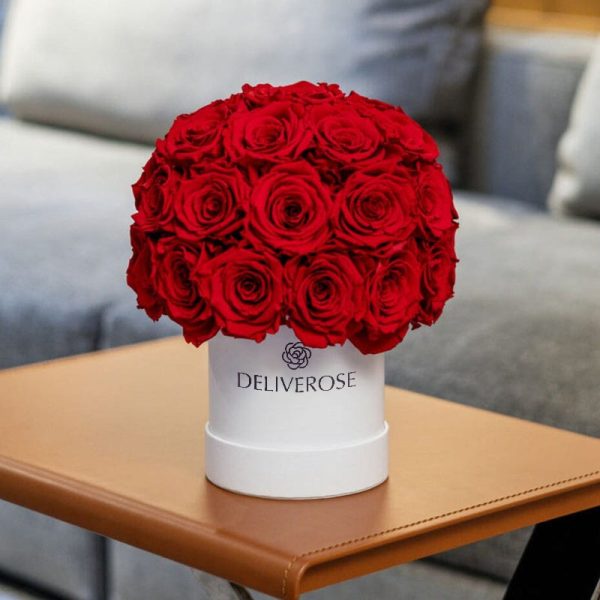 Elegant White Superdome Box with Red Roses