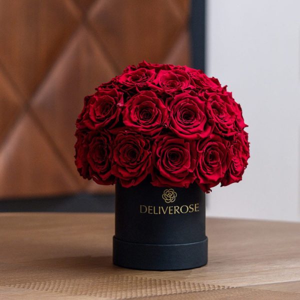 The DELIVEROSE Elegant Box collection is both eye-catching and charming. This box of roses brings a touch of luxury and elegance to any space in your home, whether on a coffee table, nightstand, or windowsill.