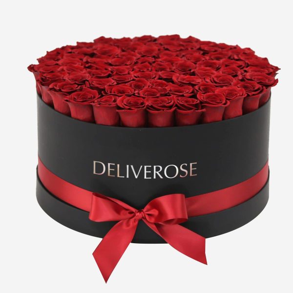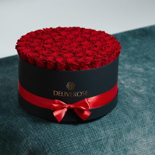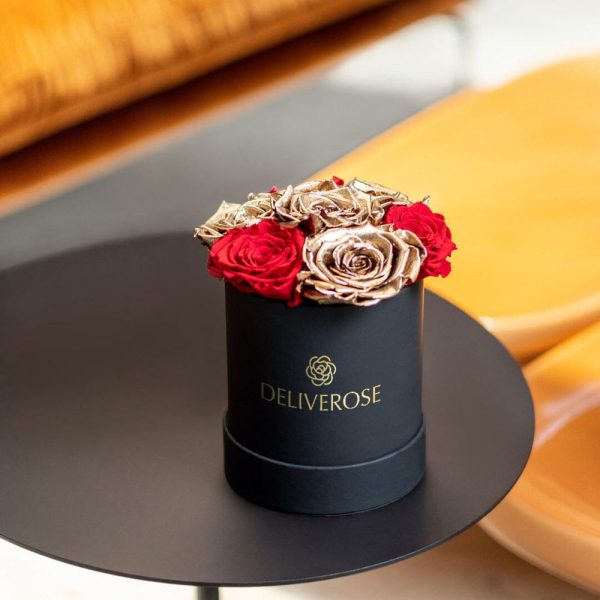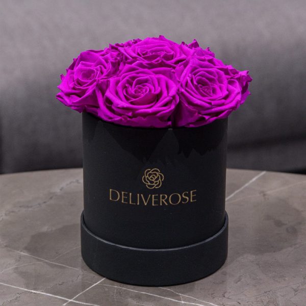 Elegant Black Box with Bright Purple and Gold Mini Roses