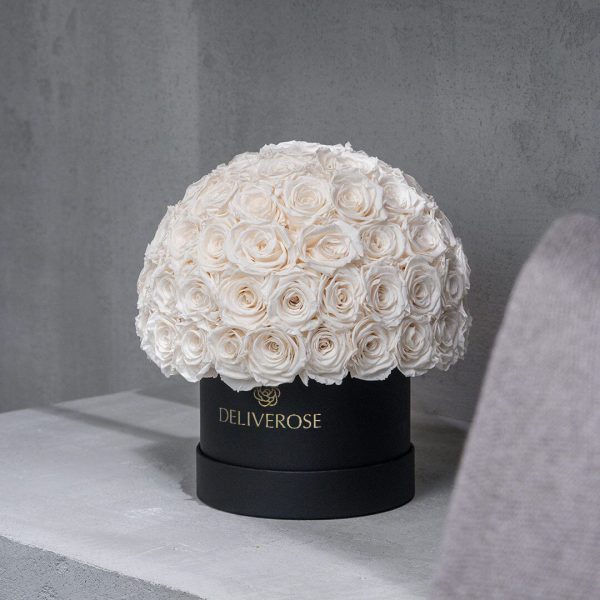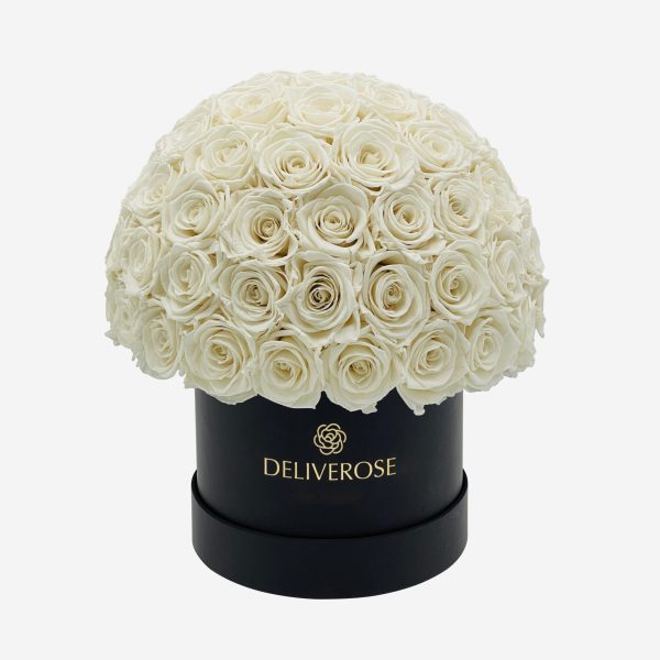 Timeless Black Box with White Persian Buttercups and Green Hydrangeas